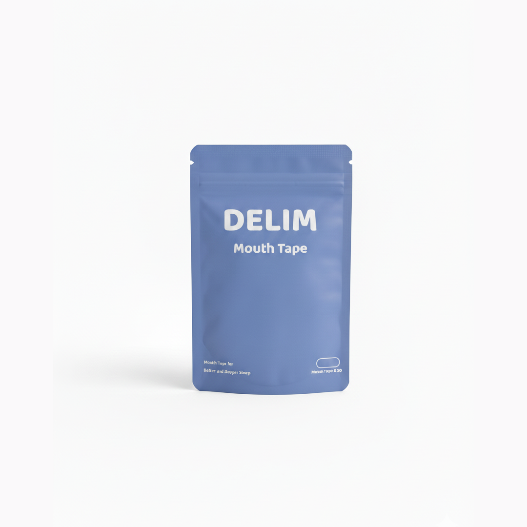 DELIM Mouth Tape is a soft, skin-safe strip designed to gently keep your mouth closed during sleep. It helps promote nasal breathing — a habit that’s been linked to more relaxed, quiet, and efficient nighttime breathing.