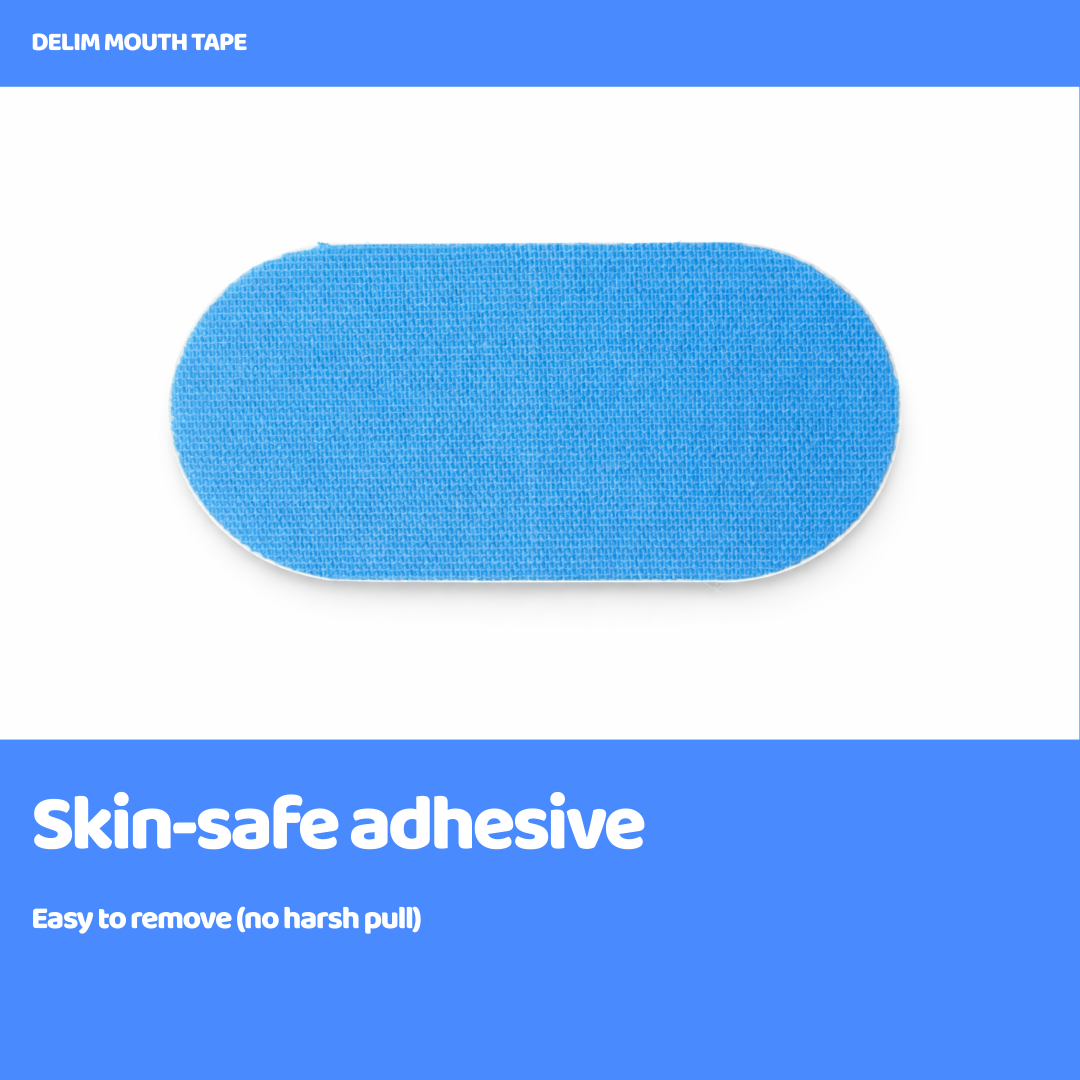 DELIM Mouth Tape is a soft, skin-safe strip designed to gently keep your mouth closed during sleep.It helps promote nasal breathing — a habit that’s been linked to more relaxed, quiet, and efficient nighttime breathing.